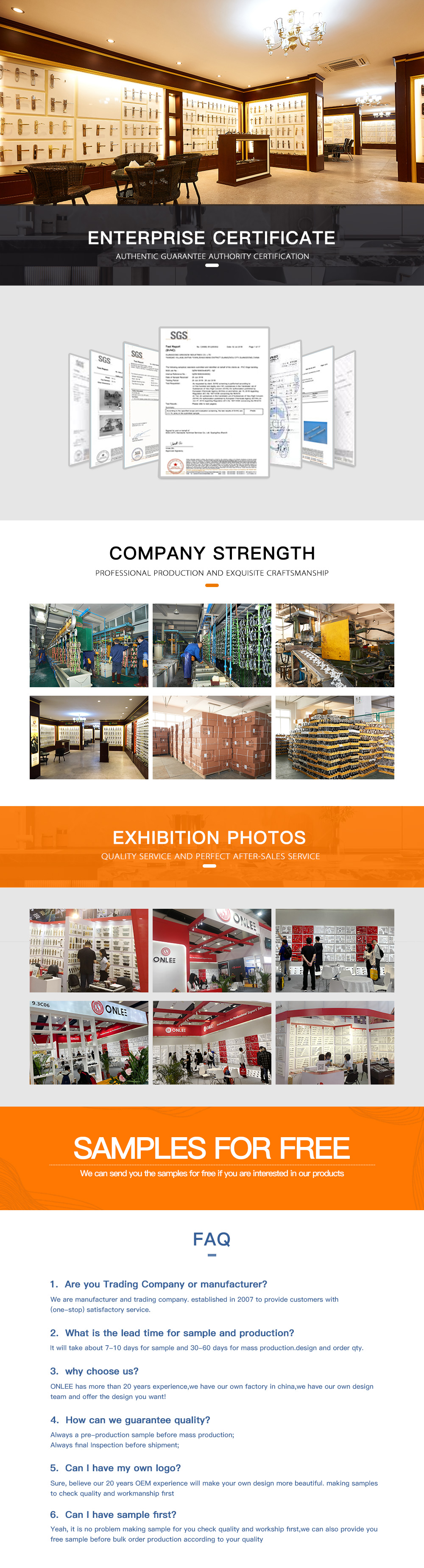 Established in 2003.ONLEE GROUP is a professional manufacturer and exporter that is concerned with design, development and production of furniture hardware door hardware and accessory.ONLEE head office is located in Huaian city(near Shanghai),three...